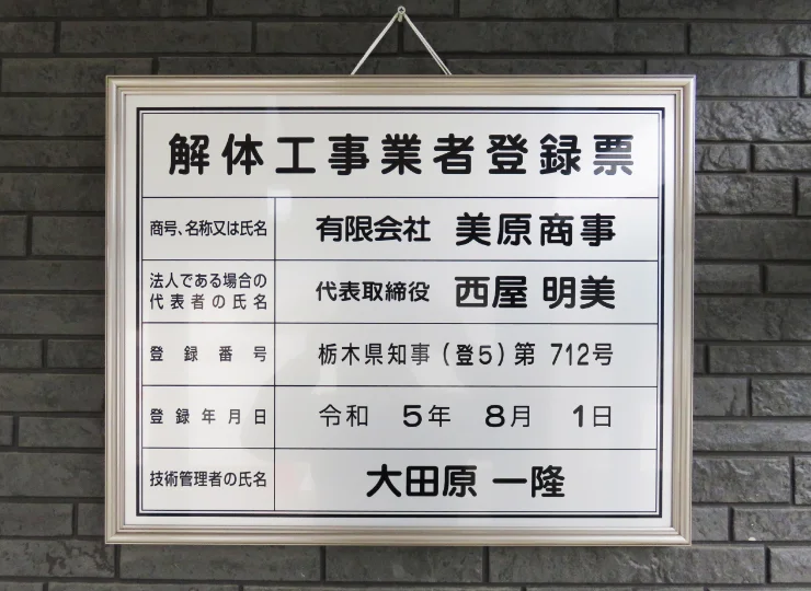 有限会社 美原商事は栃木県を中心に関東圏内、福島県、宮城県から許可を